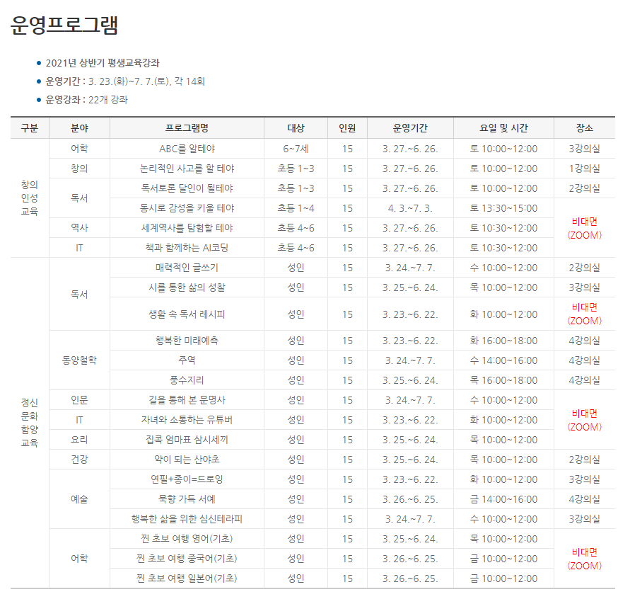 경상북도교육청 안동도서관에서 운영중인 평생교육 프로그램을 소개드립니다.