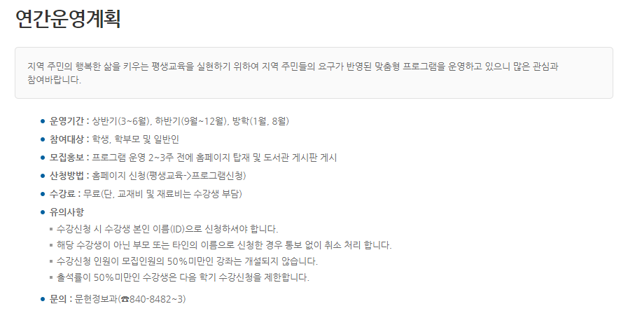 경상북도교육청 안동도서관 평생교육 운영프로그램 소개