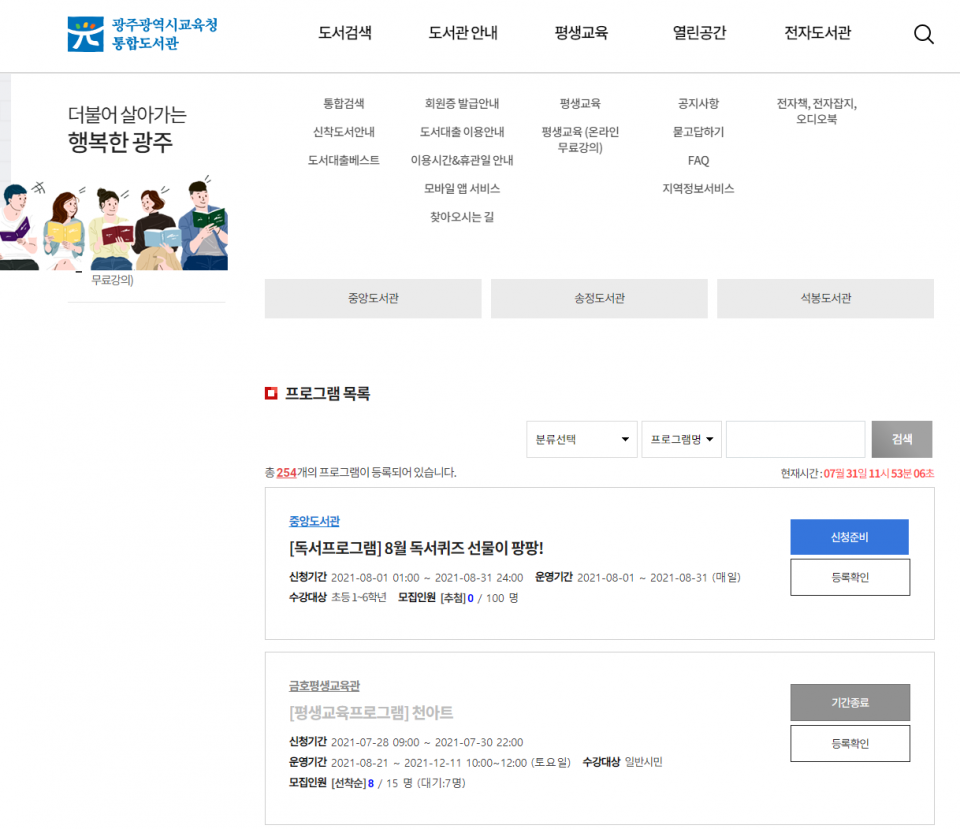 광주광역시교육청 통합도서관 평생교육 운영프로그램 소개드립니다. 프로그램개설 지원해 드립니다.