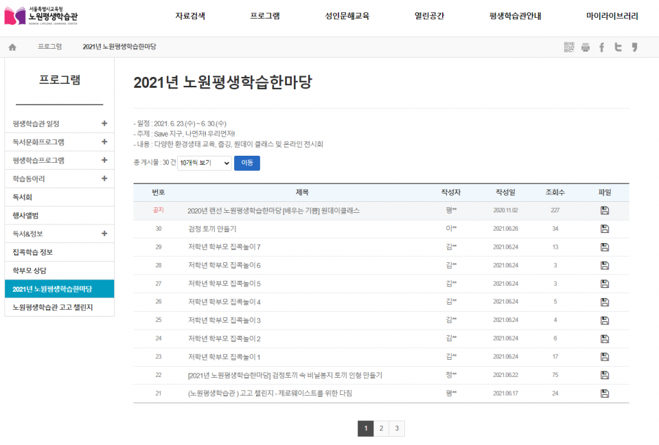 2021년 노원평생학습한마당 프로그램 소개드립니다.